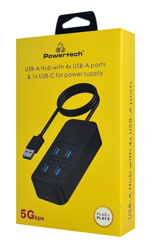 POWERTECH USB 3.2 hub PTR-0157, 4x θυρών, 5Gbps, USB σύνδεση, 1m, μαύρο