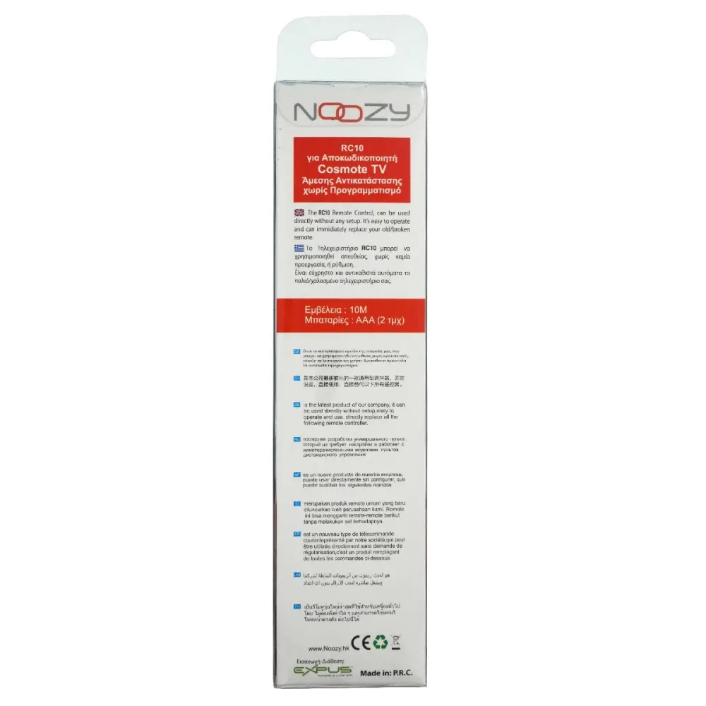 Τηλεχειριστήριο Noozy RC10 για Αποκωδικοποιητή Cosmote TV Άμεσης Αντικατάστασης χωρίς Προγραμματισμό. Εμβέλεια έως 10μ. Λειτουργεί με 3 μπαταρίες ΑΑΑ