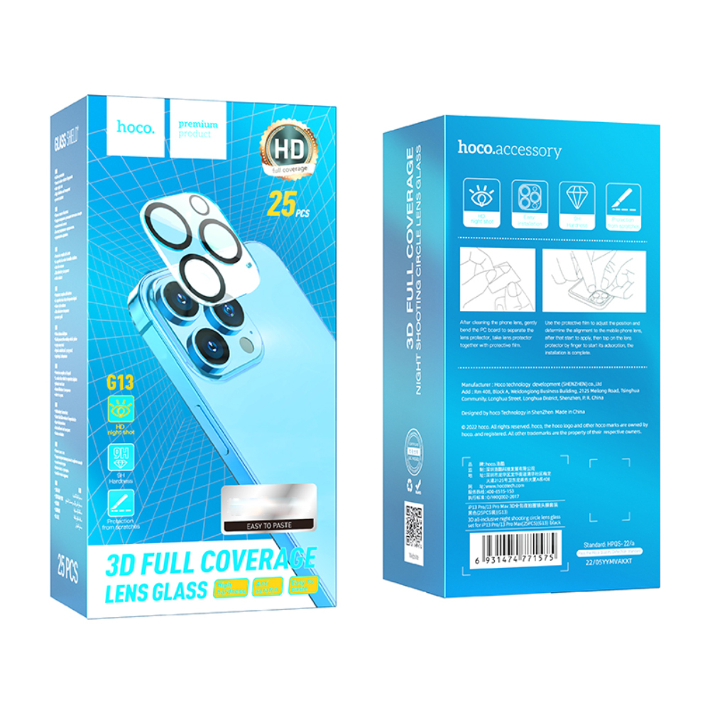 Προστασία Κάμερας Hoco 3D All-Inclusive Night Shooting G13 για Apple iPhone 16/16 Plus Σετ 25τεμ.